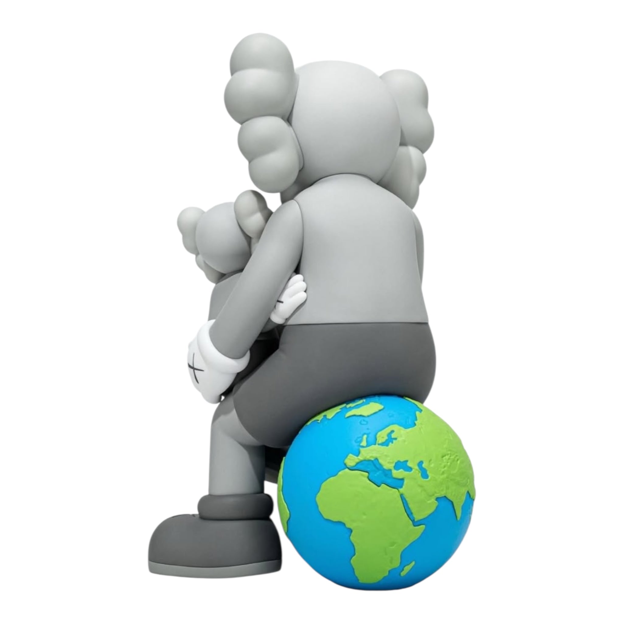The KAWS:HOLIDAY Thailand vinyl figures were released in 2025 as part of KAWS’s global art project. They come in three colorways—brown, black, and grey—and depict the iconic Companion character seated on a globe, cradling a smaller version of itself. Each figure stands approximately 9.5 inches tall (about 24 cm) and includes a certified NFC chip for authenticity. These figures were available through DDT Store and quickly became sought-after collectibles.