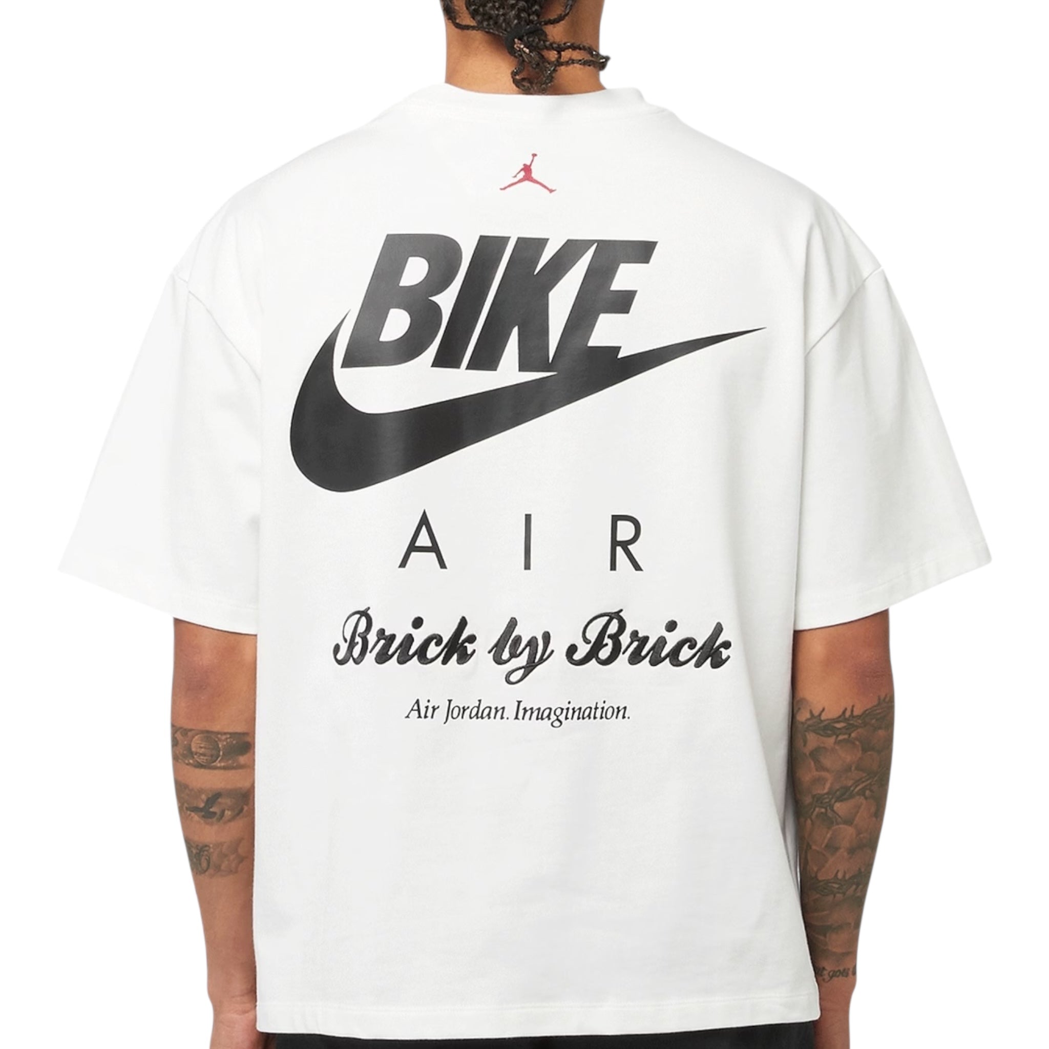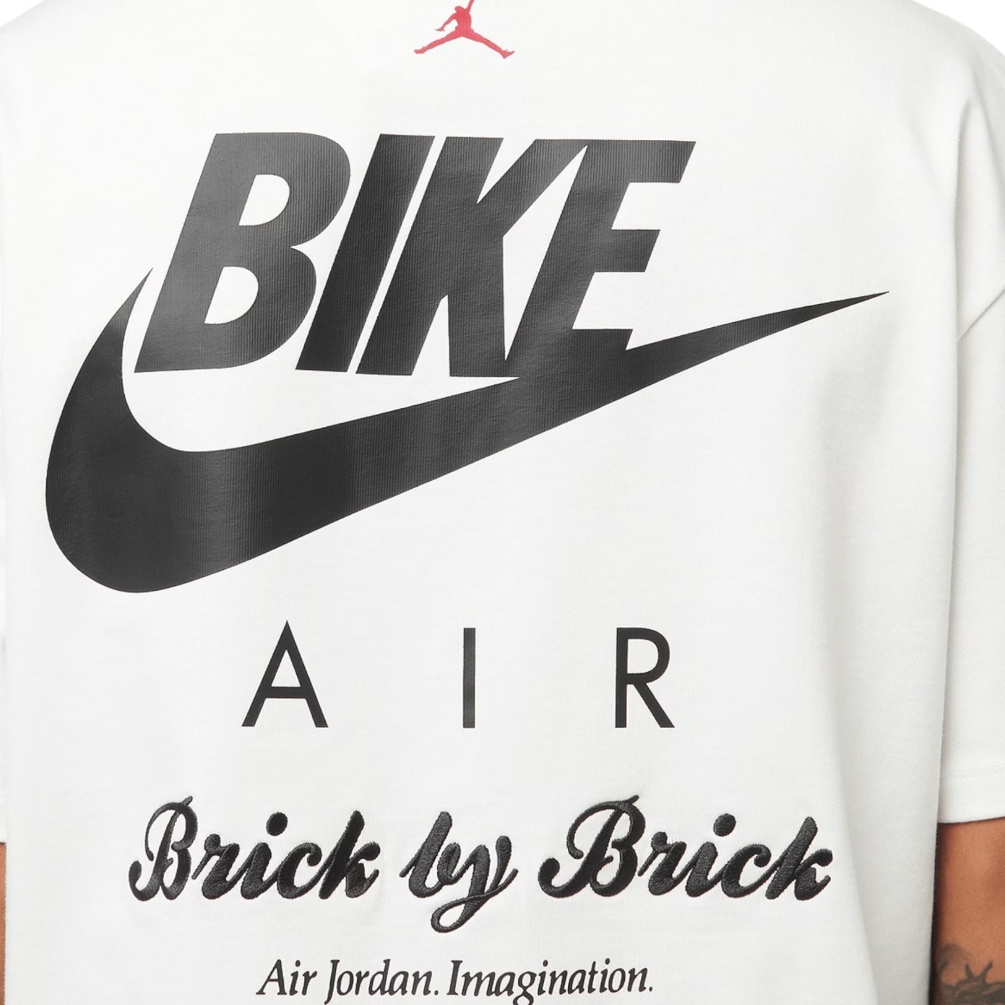 The Jordan x Nigel Sylvester Brick Tee White is a white tee shirt that was designed and released in collaboration between pro BMX biker Nigel Sylvester and the Jordan Brand.